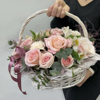 Корзина с кустовыми пионовидными розами "Черничный взрыв"140 000 ₸